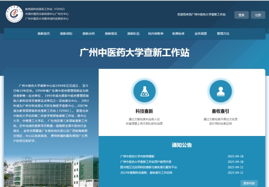 详细使用方法见科技查新网站首页“通知公告”栏目的《广州中医药大学查新工作站用户使用手册》。