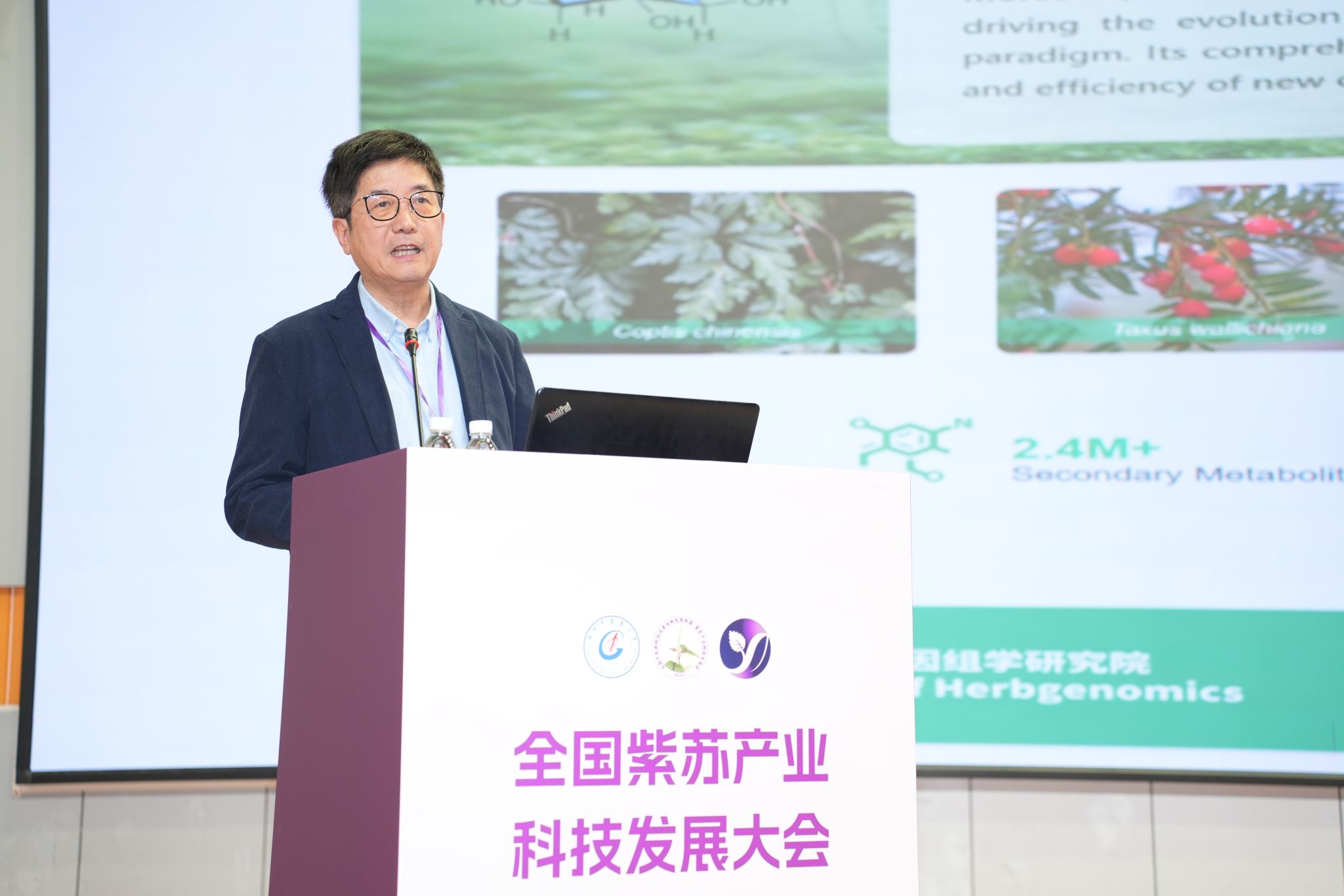 中国工程院院士、成都中医药大学首席教授陈士林以 《药食同源中药材发展新技术及新策略》为题作报告,从基因组学、分子育种、功效物质深度挖掘等前沿领域,为紫苏产业科技升级提供顶级智库支撑。其团队提出的 “科技赋能传统药材现代化” 理念,为紫苏从传统药食同源植物向高附加值产业转化提供了科学路径。