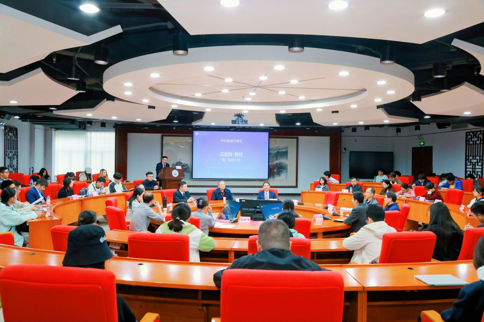 下午,原第二军医大学东方肝胆外科医院高也陶教授聚焦中医解剖学研究领域,阐释了中医解剖学的理论体系与临床应用价值;南方医科大学中医药学院杜庆锋院长结合西医院校办学特色与教学实际,分享了中医经典学科建设的思考方向与实践探索路径;暨南大学中医学院刘红杰副院长从“毒邪主导、历损三阴”理论视角,探索了帕金森病的发病机制;广州中医药大学张小虎副教授介绍了广州中医药大学中医经典学系的现有概况和未来规划方向。