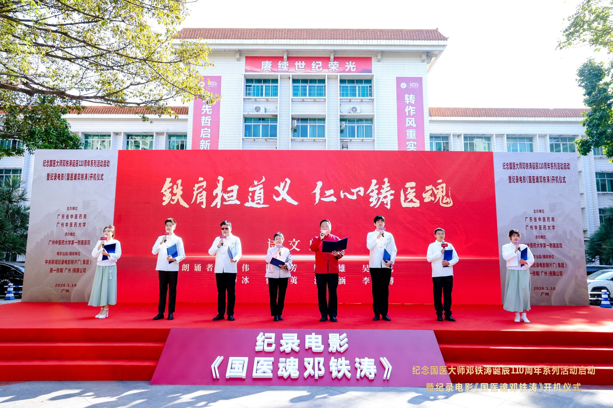 “纪录电影《国医魂邓铁涛》,开机大吉!”2026年1月10日上午,纪念国医大师邓铁涛诞辰110周年系列活动启动暨纪录电影《国医魂邓铁涛》开机仪式在广州中医药大学三元里校区举行。