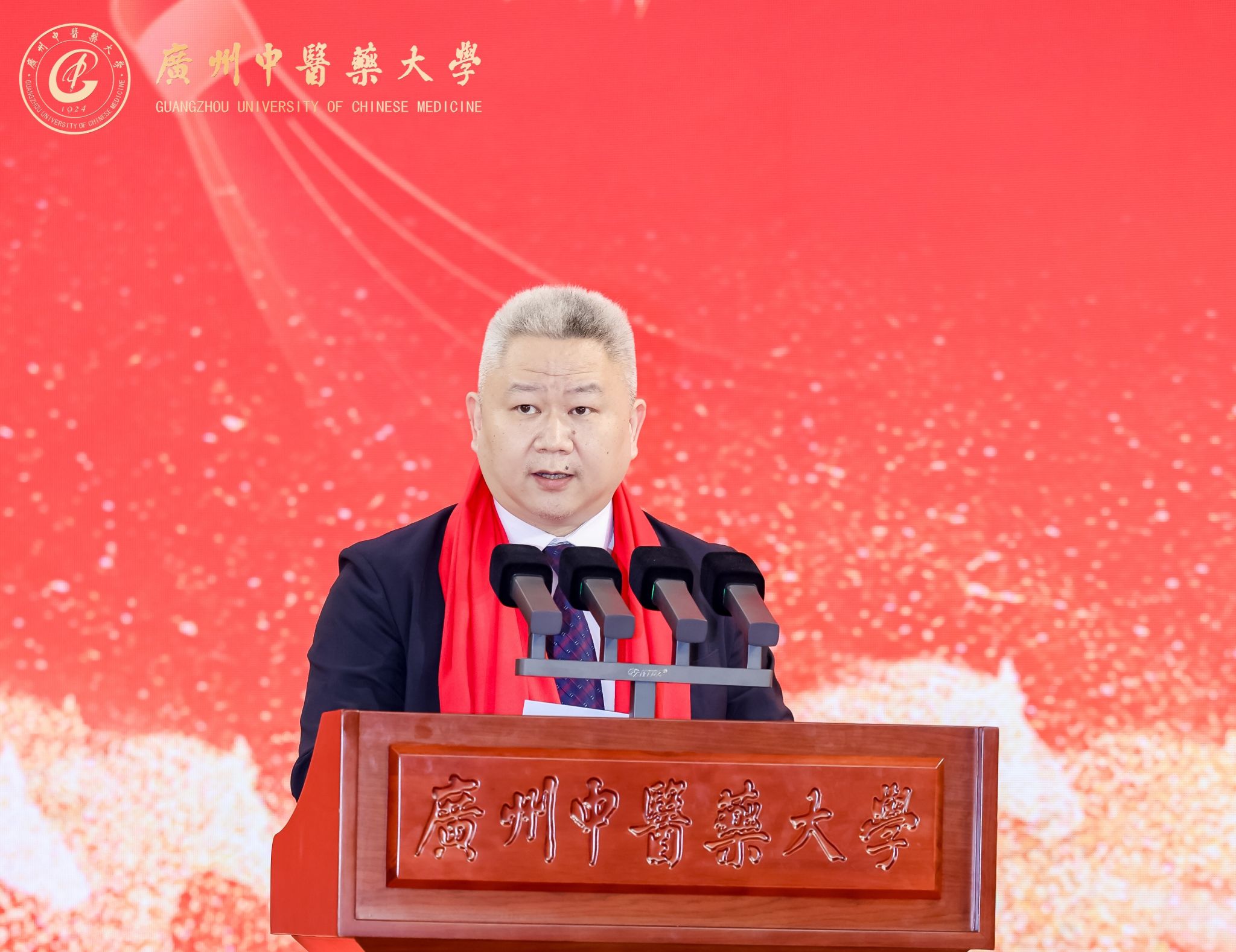王宏斌发表讲话并揭晓学校2025年度十件大事。他表示,2025年在全体广中医人的齐心拼搏下,学校各项工作成效显著。2026年,学校将紧紧围绕人才培养、科学研究、社会服务、文化传承创新、国际交流合作等核心领域,聚焦“双一流”和高水平大学建设目标,深度融合“铁涛精神”,为广东增创新优势、实现新突破,为广东一直“走在前、作示范、挑大梁”贡献广中医力量。