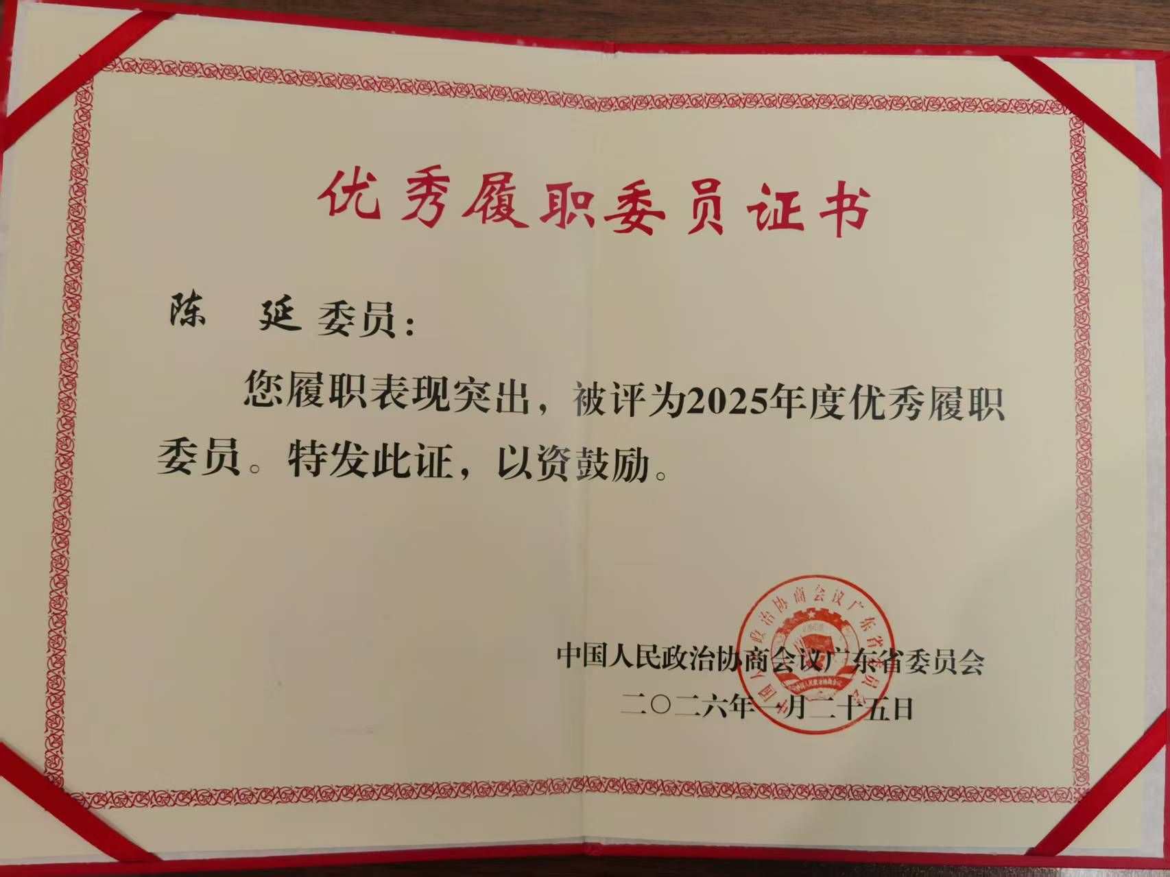 委员们的建言得到广泛关注。丁邦晗委员《关于深化体制机制改革,破除我省国有医药企业投资创新药障碍的提案》《关于加强制度供给与骑手权益保障,推动外卖行业高质量发展的提案》、陈延委员《关于积极推进住院患者免陪照护服务,更好应对人口老龄化挑战的提案》、陈彩英委员《关于加强我省粤东西北地区精神卫生人才队伍建设的提案》等多项提案获得立案。陈延委员获评“2025年度优秀履职委员”。
