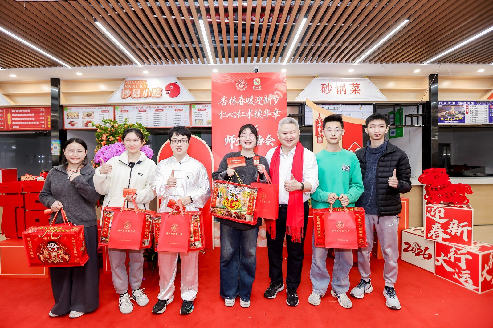 在两校区,王宏斌校长、史亚飞副校长与假期留校学生亲切交流、共迎新春。王校长与同学们一同回顾邓铁涛教授的生平事迹,阐释“铁涛精神”的深刻内涵,勉励大家传承发扬老一辈中医人的初心与风骨,将节日团聚转化为一堂生动的思政实践课。校领导悉心询问同学们留校期间的学习生活情况,并送上诚挚的节日祝福与关怀。
