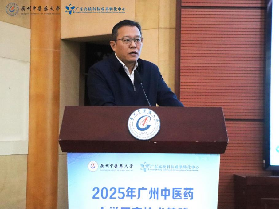 开班仪式上,广州中医药大学党委常委、副校长杨荣源致辞。他表示,专业化技术转移人才是打通中医药科技成果从“实验室”走向“市场”的关键纽带,更是推动中医药与产业深度融合、实现现代化产业化的核心支撑。他强调,本次培训紧扣政策解读、知识产权布局、成果转化实践等核心环节,旨在系统提升学员的专业素养与实务操作能力,助力破解中医药成果转化中的堵点难点,为学校构建高效顺畅的成果转化体系筑牢人才根基,为健康中国战略实施、粤港澳大湾区中医药高地建设注入强劲动力。