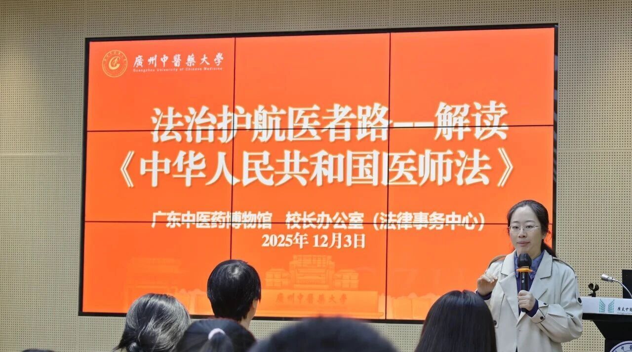 广东中医药博物馆与校长办公室(法律事务中心),联合开展题为“法治护航医者路——解读《中华人民共和国医师法》”普法讲座。