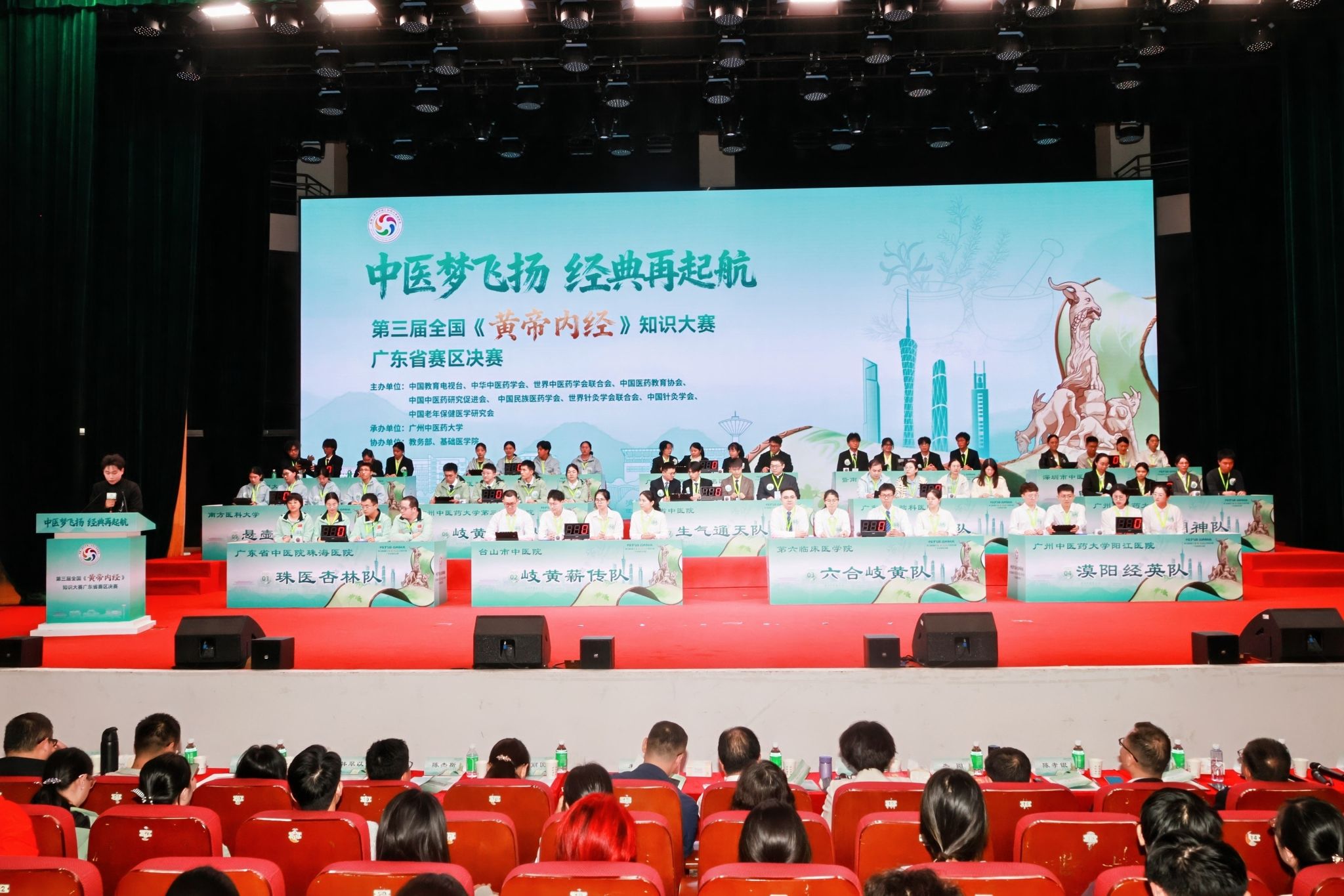 11月12日下午,由中国教育电视台、中华中医药学会、世界中医药学会联合会等单位主办,广州中医药大学承办的第三届全国《黄帝内经》知识大赛广东赛区决赛在广州中医药大学大学城校区举行。来自全省多所高校、医院的14支参赛队伍围绕中医经典展开了一场高水平的知识较量与智慧交流。
