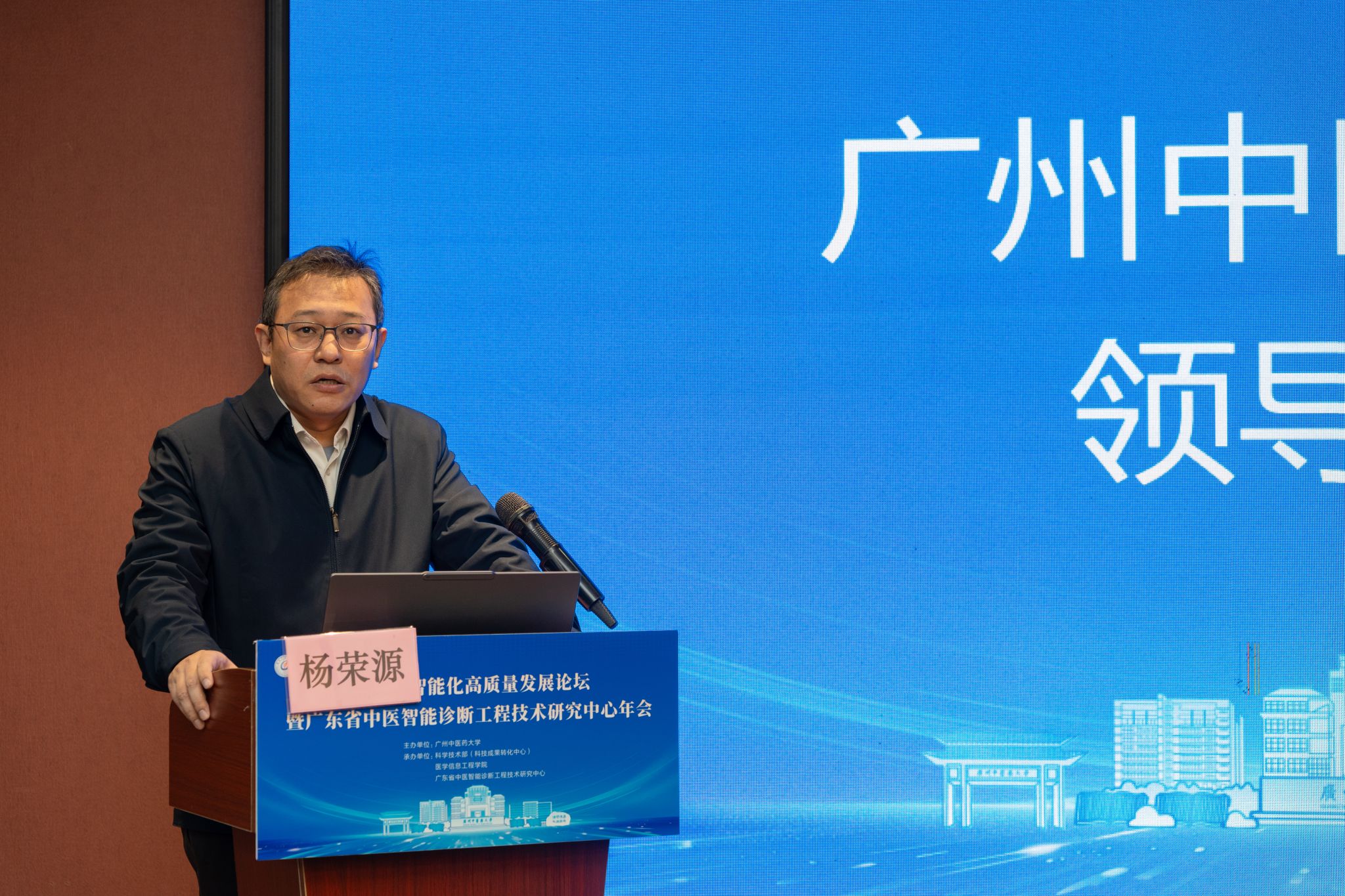 2025年12月21日,中医药智能化高质量发展论坛暨广东省中医智能诊断工程技术研究中心年会在广州举行。会议由广州中医药大学主办,科学技术部、医学信息工程学院、广东省中医智能诊断工程技术研究中心联合承办,以“中医药智能化高质量发展”为主题,汇聚广东省中医药局、省科技厅、高校专家学者和企业技术骨干等同仁,共探中医药智能化发展方向。广州中医药大学党委常委、副校长、广东省中医智能诊断工程技术研究中心主任杨荣源,广东省中医药局规财人事处调研员李新出席并致辞。