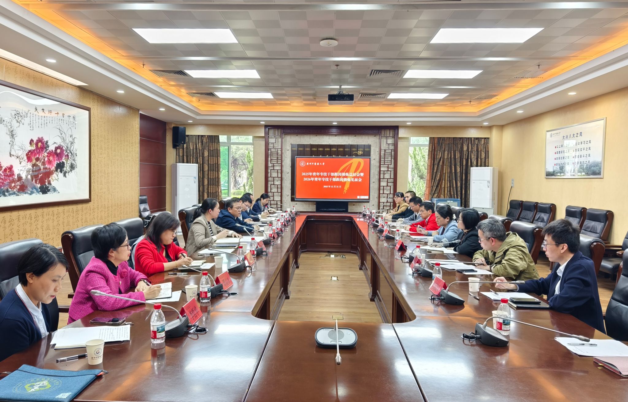 2025年12月31日下午,学校在大学城校区办公楼103会议室组织召开2025年青年专业技术干部跟岗锻炼总结会暨2026年跟岗锻炼见面会。学校党委常委、副校长杨荣源出席会议并讲话,会议由党委组织部黄琇雯同志主持。