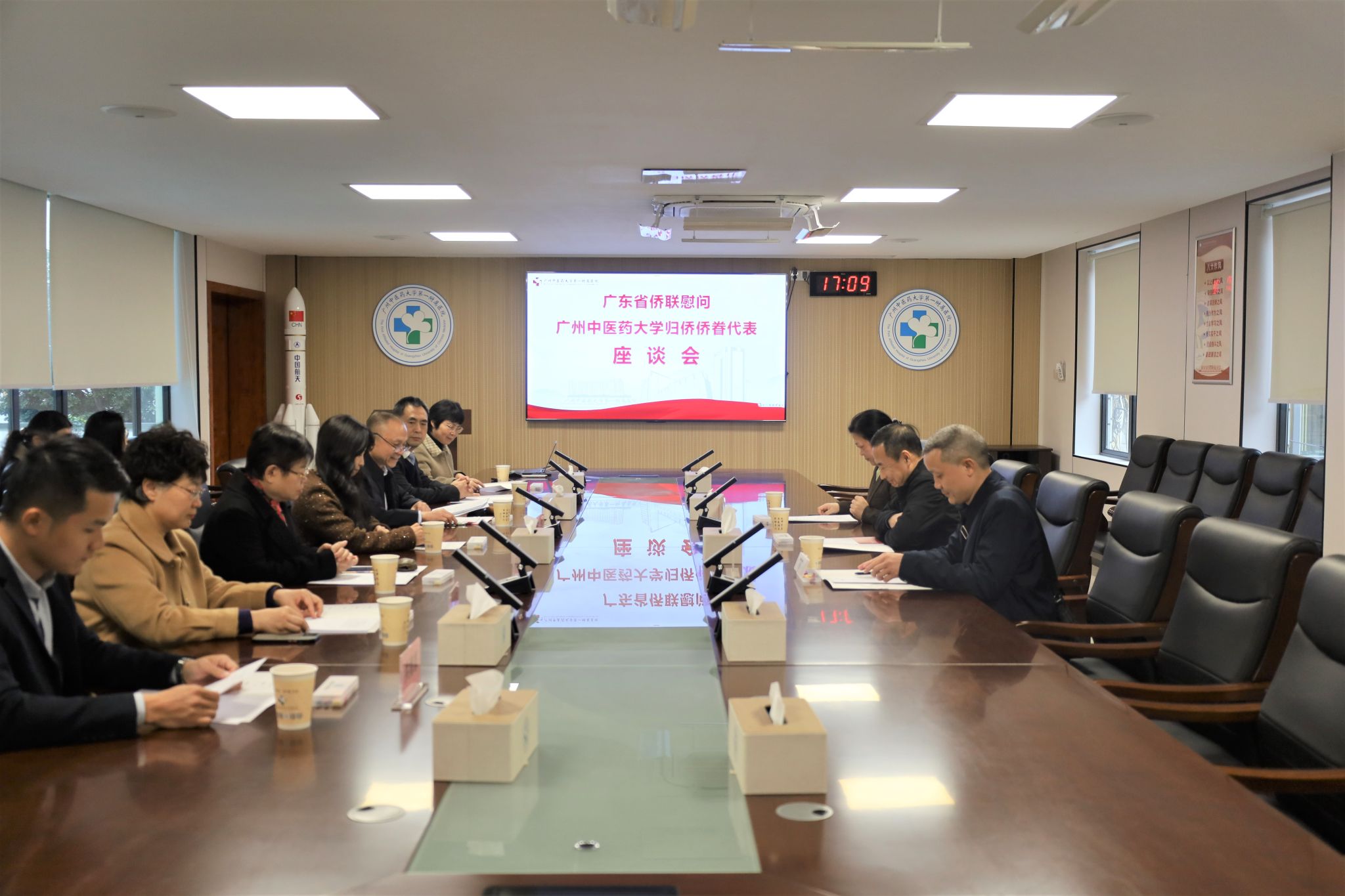 下午,在广州中医药大学第一附属医院举行座谈会。林健副主席代表省侨联向与会归侨侨眷代表并通过他们向全校归侨侨眷致以节日问候。他充分肯定了我校归侨侨眷群体胸怀家国、情系桑梓、立足本职、奋发有为的精神风貌,为广东经济社会发展和中医药事业传承创新所注入的“侨”动力。游江主席代表学校侨联和大学党委,对省侨联长期以来的指导与关怀表示感谢,并向林丽珠现场送上新春慰问金。林丽珠在发言中分享了自身在医疗、教学、科研一线的工作体会与思考,感谢各级组织一直以来的支持与鼓励。她表示,将不忘初衷,继续发挥专业特长与侨界纽带作用,为学校“双一流”和高水平大学建设、为中医药走向世界贡献智慧与力量。第一附属医院党委副书记章遐义主持座谈会。