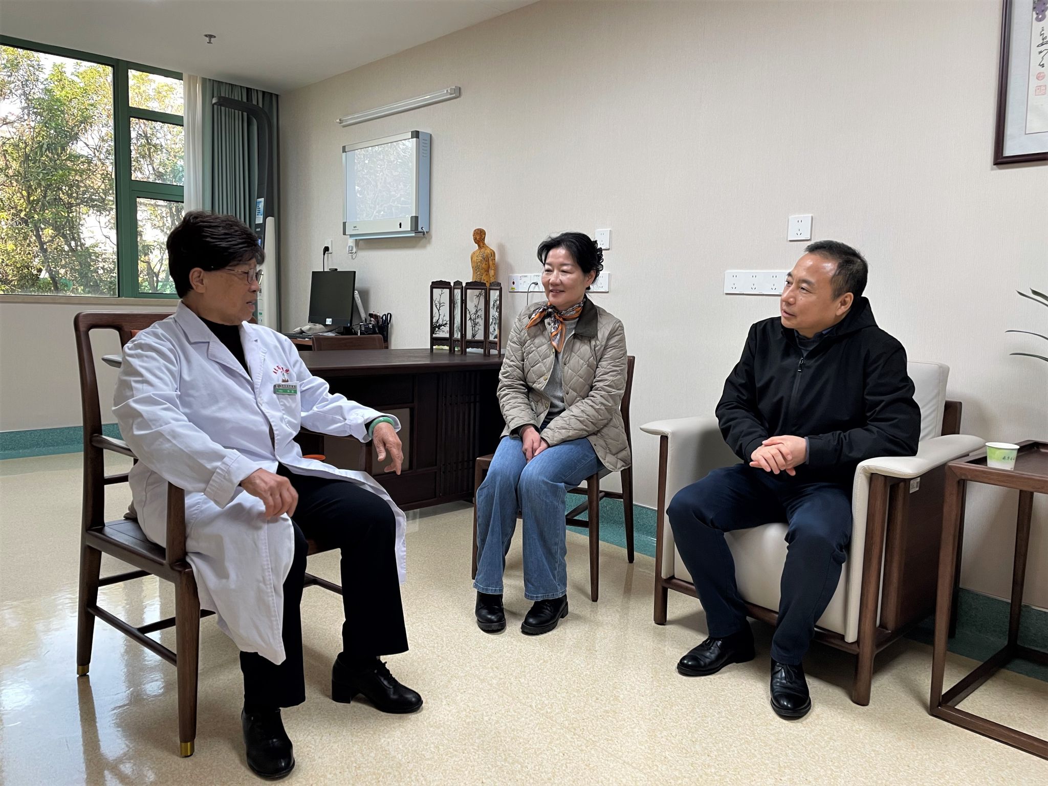 上午,林健副主席一行来到广州中医药大学第二附属医院(广东省中医院)二沙岛医院,在诊室看望了林毅国医大师。林健副主席详细询问其工作与生活近况,对她多年来深耕临床、教书育人、传承创新中医药事业所取得的卓越成就表示高度赞赏,并代表省侨联送上满载祝福的花束与果篮。学校侨联代表大学党委向林毅赠送慰问金,表达学校对其长期贡献的衷心感谢。林毅对省侨联和学校的关怀表示感激,并表示将继续坚守岗位,为患者健康和中医药事业发展贡献力量。第二附属医院(广东省中医院)副院长陈海陪同慰问。