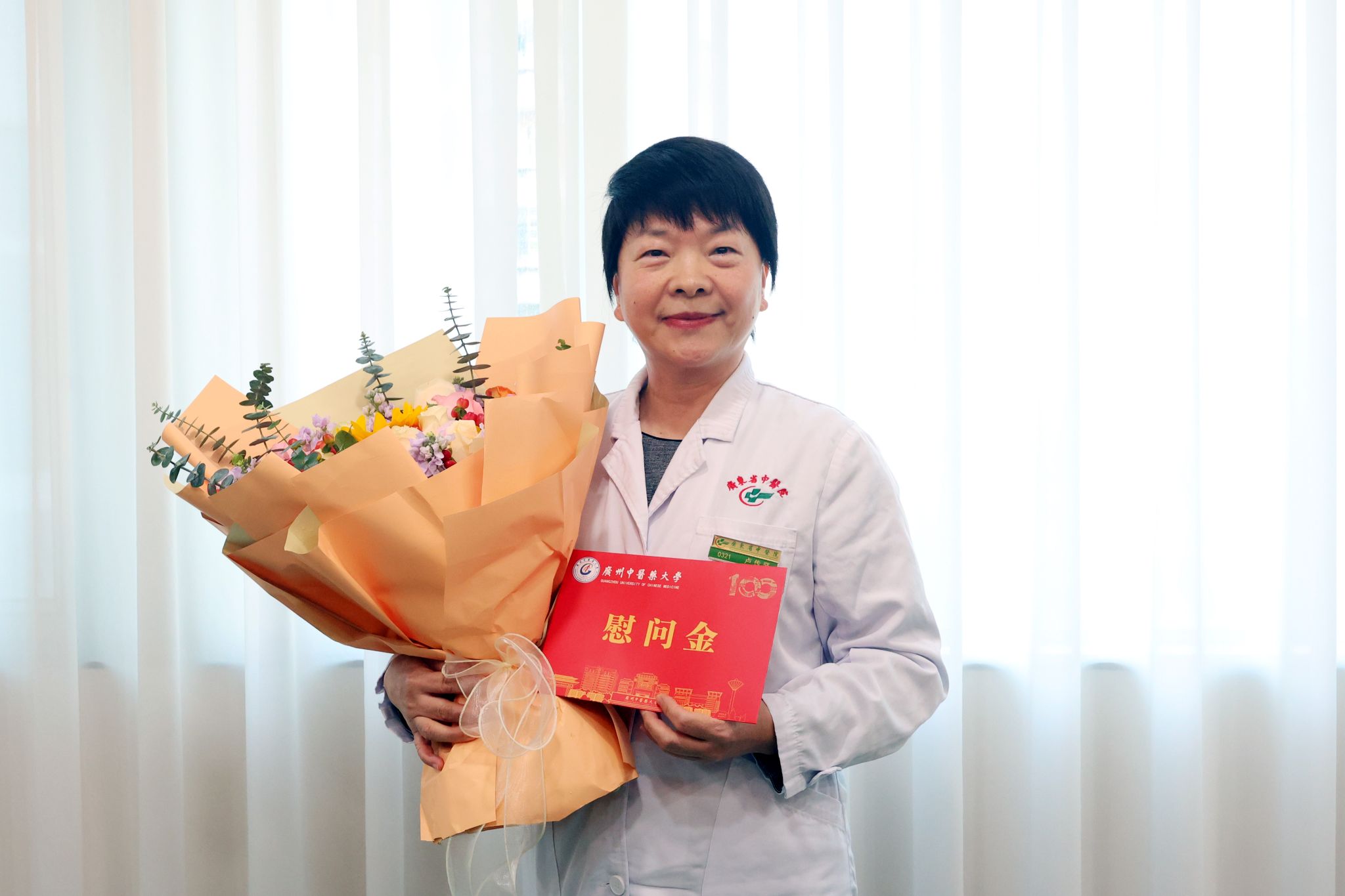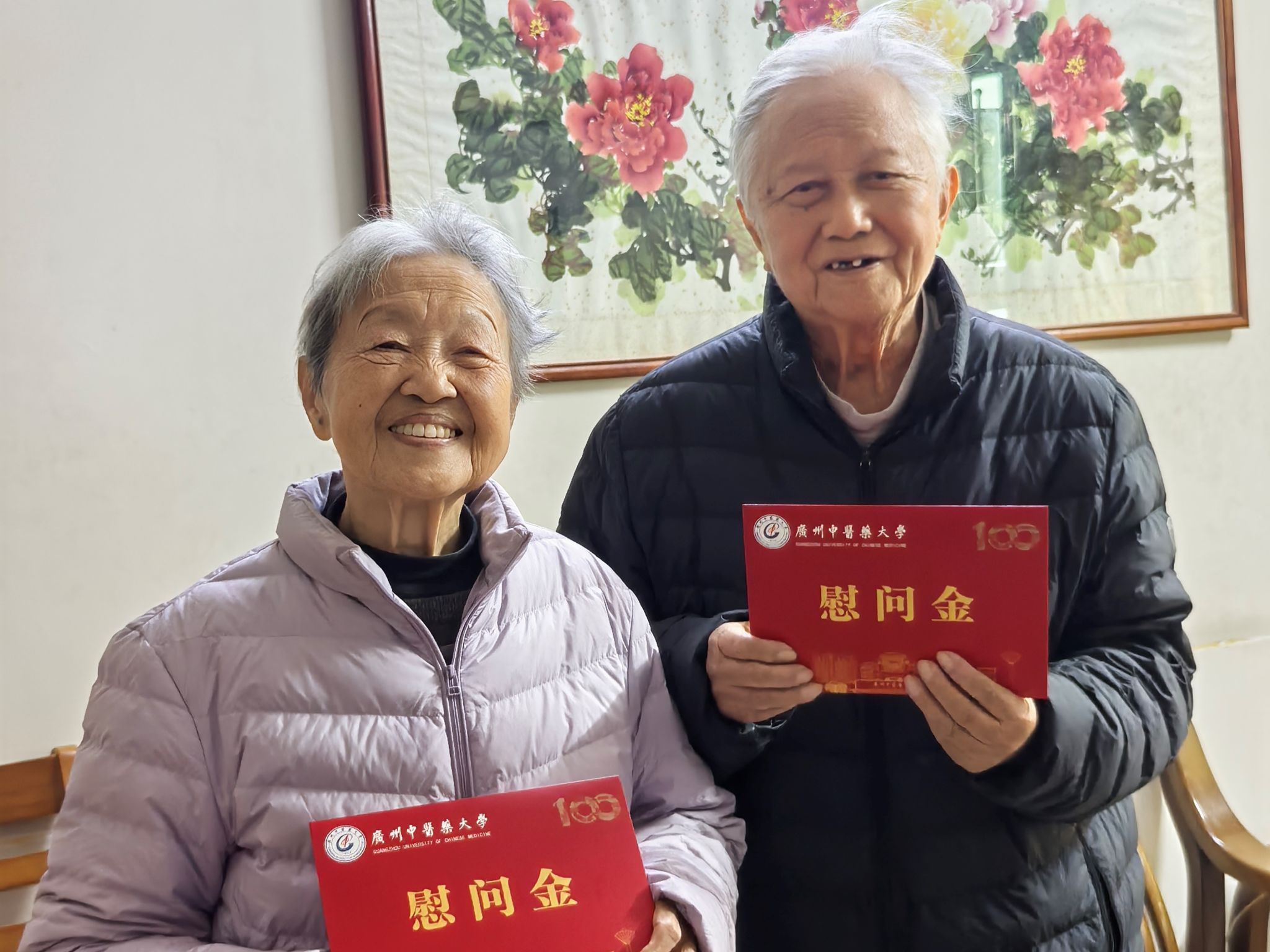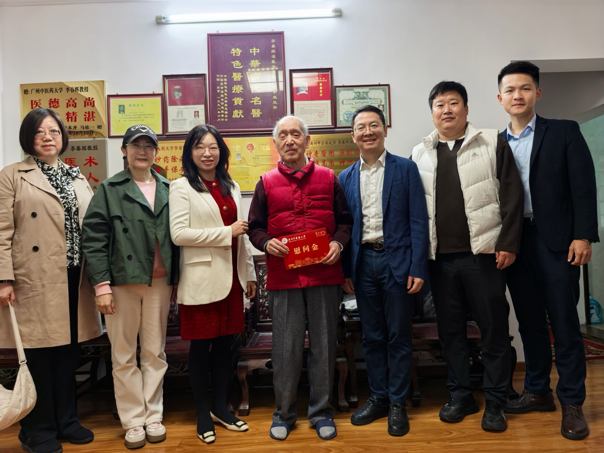 民盟广州中医药大学委员会副主委徐晖、胡小英,退休支部主委马欢洪、委员冼建春,以及大学支部主委郑健等一同参加慰问。